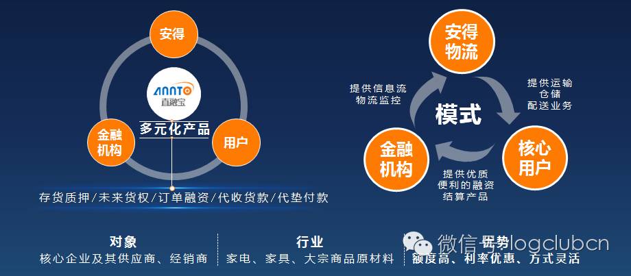 直融宝,以多元化的金融产品系列,提供存货质押、未来货权、订单融资、代收货款、代垫付款等多种金融服务,创新性实现安得物流、核心用户与金融机构的三方互利模式,驱动产业发展。