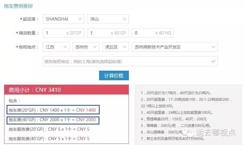 ▼以“运去哪”官网苏州虎丘区进上海洋山港为例,小柜拖车1400元,大柜拖车2000元,价格相差约43%!