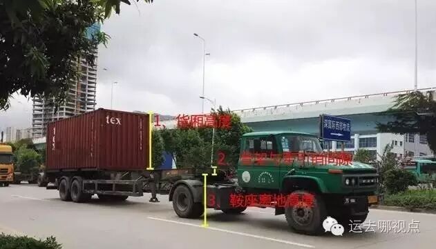 目前,40HQ集装箱为2.9米,牵引车鞍座离地高度约为1.32米,加上骨架与牵引销间隙,总的离地高度大概在1.55米左右。这种情况下,40HQ的车辆高度将达到4.45米(2.9米+1.55米),妥妥的超高。